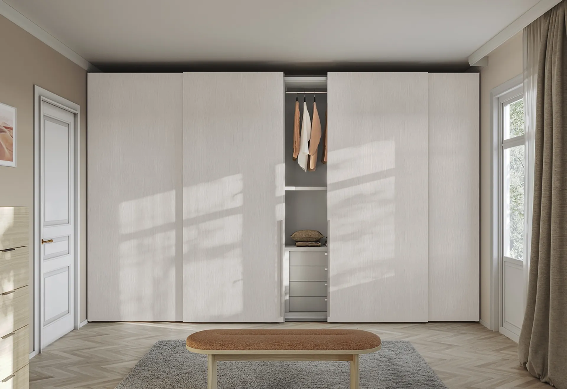 Cerchi un armadio in melaminico? Clicca e scopri armadiature a muro con ante scorrevoli di Colombini Casa.