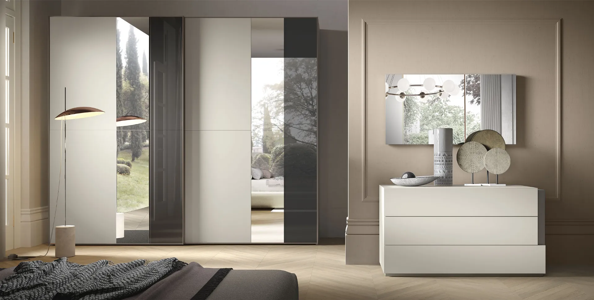 Se desideri una zona del riposo arredata al meglio, scegli l'armadio Era Laccato con ante scorrevoli di Adriatica!