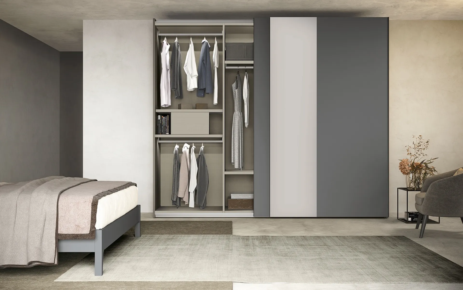 Cerchi un armadio in melaminico? Clicca e scopri armadiature a muro con ante scorrevoli di Colombini Casa.