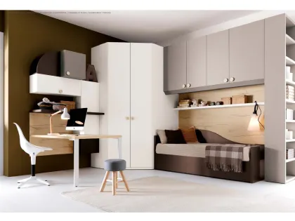 Camerette componibili per ragazzi: scopri il modello in melaminico Arcadia AC002 di Colombini Casa per stanzette classiche.
