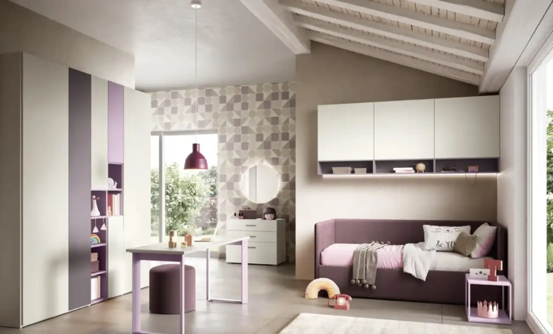 Camerette componibili per bambine: scopri il modello in melaminico K106 di Moretti Compact Camerette per stanzette moderne.