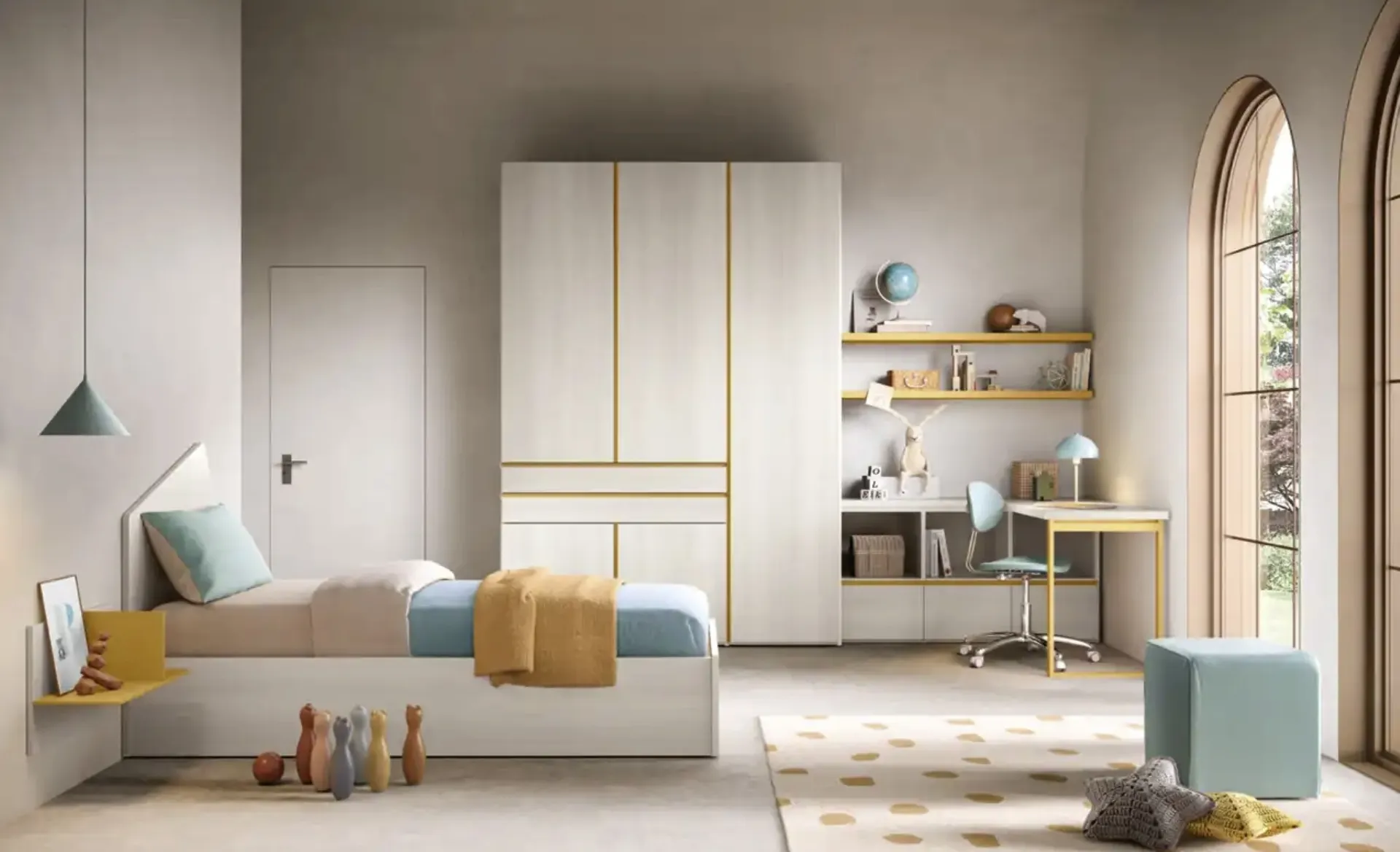 Questa soluzione in melaminico ultima al meglio le doti di praticità e l'estetica della camaretta, in quanto è capace di unire funzionalità ed ergonomia. Se cerchi spunti progettuali per organizzare al meglio la stanza dei tuoi bambini, ti proponiamo la Cameretta K113 di Moretti Compact Camerette con finitura in melaminico. Moretti Compact Camerette mette a disposizione una ricca gamma di accessori da comporre su misura: troverai letto, armadio o cabina armadio, scrivania, sedie e librerie. Porta contenuto estetico e tonalità vivaci nella stanza dedicata ai più giovani con questa proposta, una delle Camerette componibili per bambini di Moretti Compact Camerette.