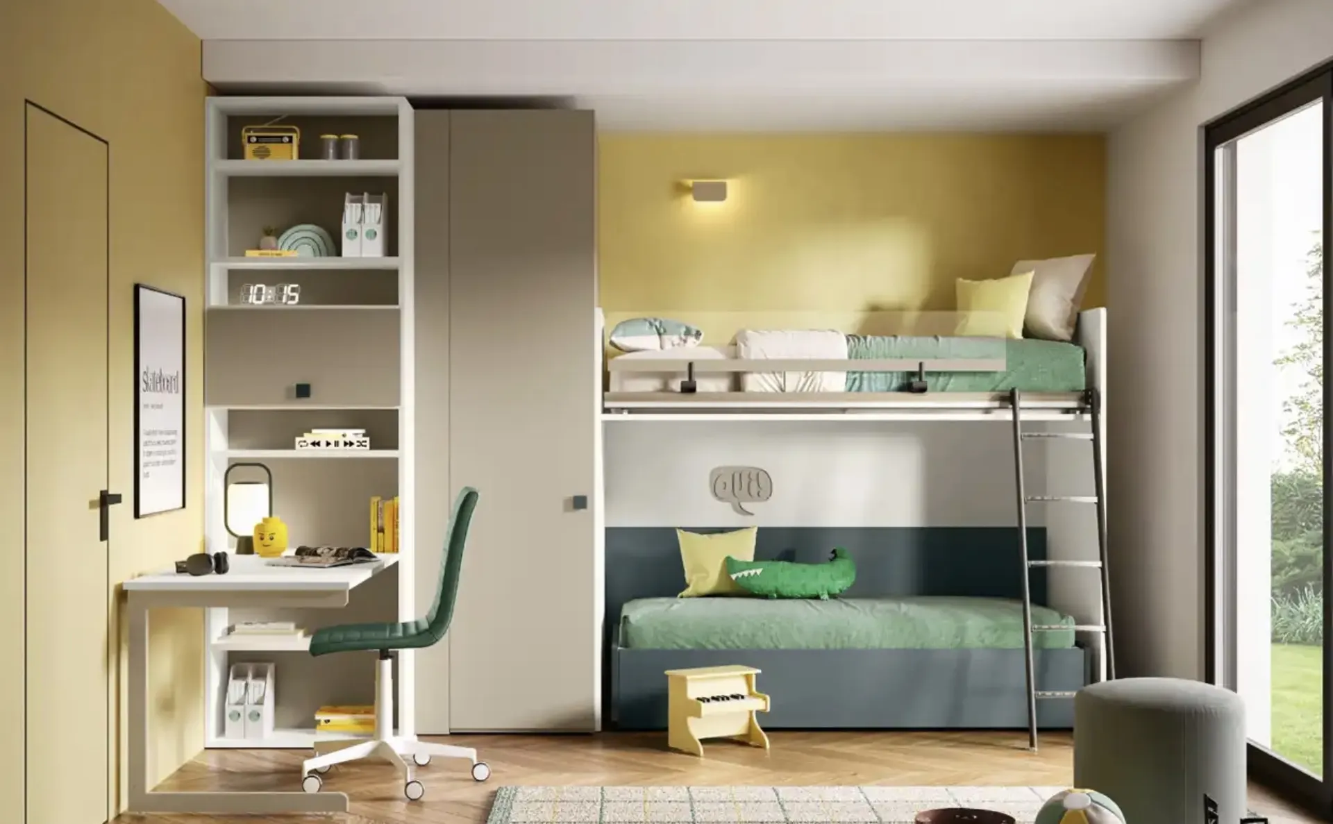 Moretti Compact Camerette soddisfa il gusto dei piccoli e le richieste degli adulti con le sue Camerette moderne con letti a castello, ideali per necessità di ogni genere. La Cameretta K114 di Moretti Compact Camerette in melaminico è un universo complesso da progettare con cura, coniugando diversi elementi accessori su misura. Vieni nel nostro punto vendita e potrai vedere dal vivo tutte le più esclusive composizioni d'arredo con letti a castello moderne di Moretti Compact Camerette per i più giovani. Colori di tendenza e soluzioni progettuali d'eccellenza contraddistinguono le più esclusive proposte del noto e rinomato marchio che presentiamo nel nostro punto vendita.