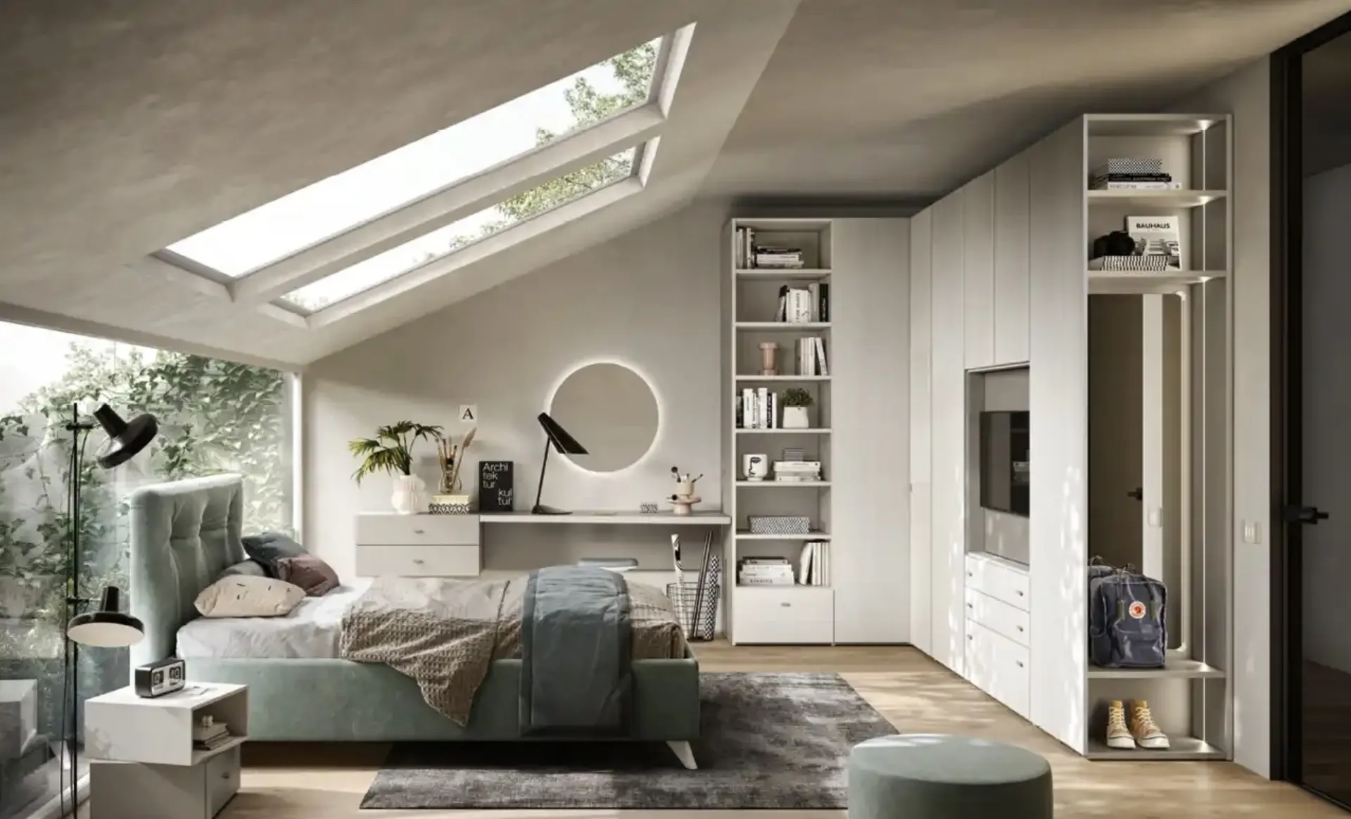 Arreda stanzette moderne con le Camerette componibili Moretti Compact Camerette! Il modello Y101 in laccato opaco è per ragazzi.