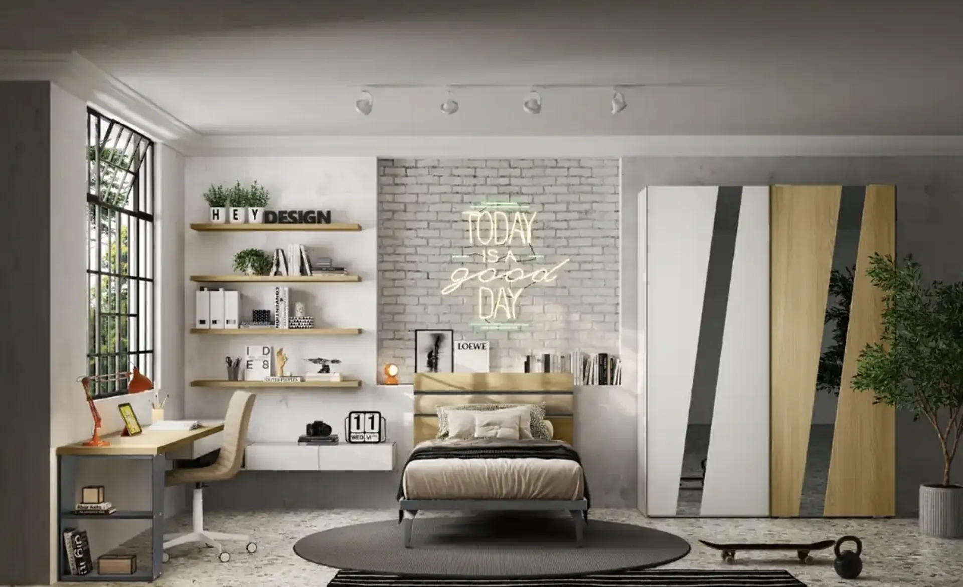 I nostri bambini passano ore delle loro giornate nelle loro camere da letto: rendile adatte per dedicarsi alla scuola, giocare e dormire quotidianamente. Le Camerette dei nostri figli sono il luogo dove cresceranno divertendosi e sognando, perciò è imprescindibile che lo spazio sia pratico. Con la Cameretta Y119 di Moretti Compact Camerette in melaminico ti garantirai un perfetto accordo di ergonomia e sicurezza, ideale per la stanza dei tuoi figli. Presentiamo nel nostro showroom diverse Camerette componibili moderne per ragazzi del marchio, ideali per seguirli durante la loro crescita.