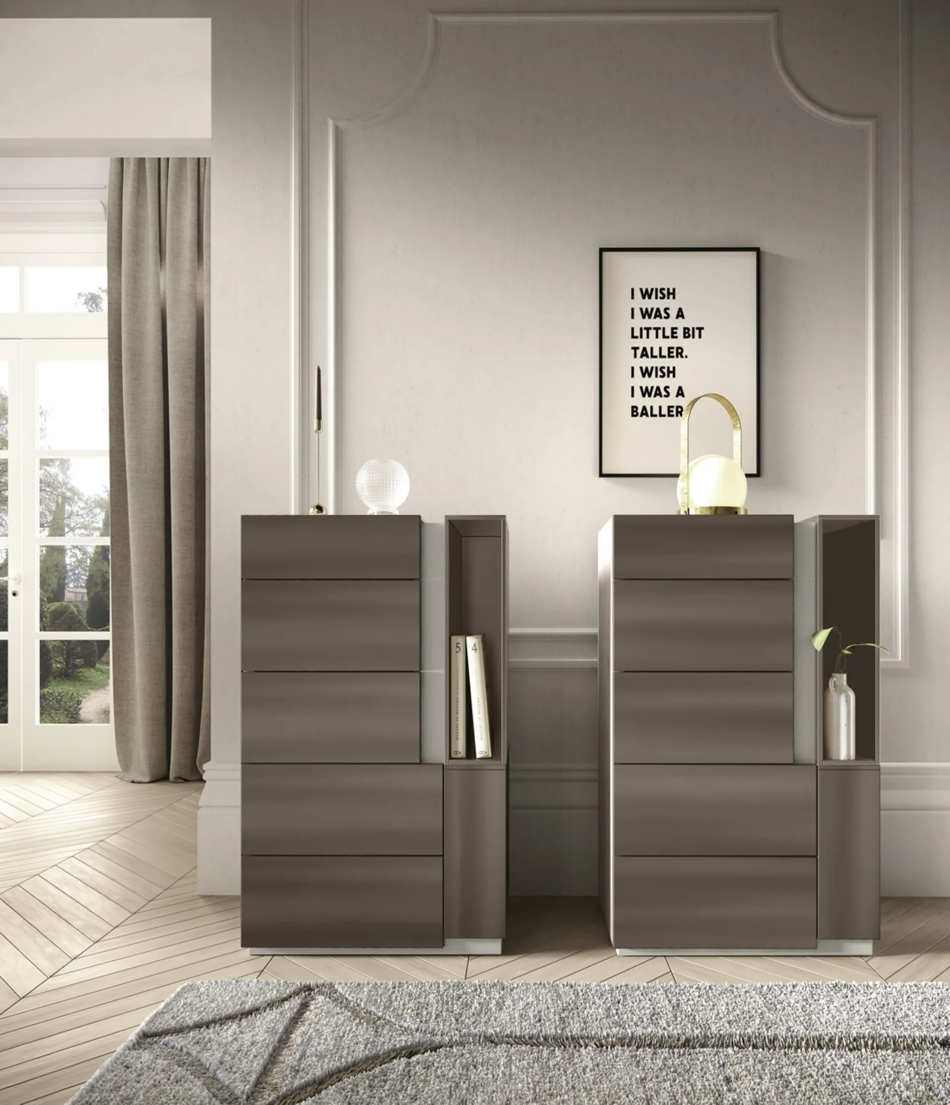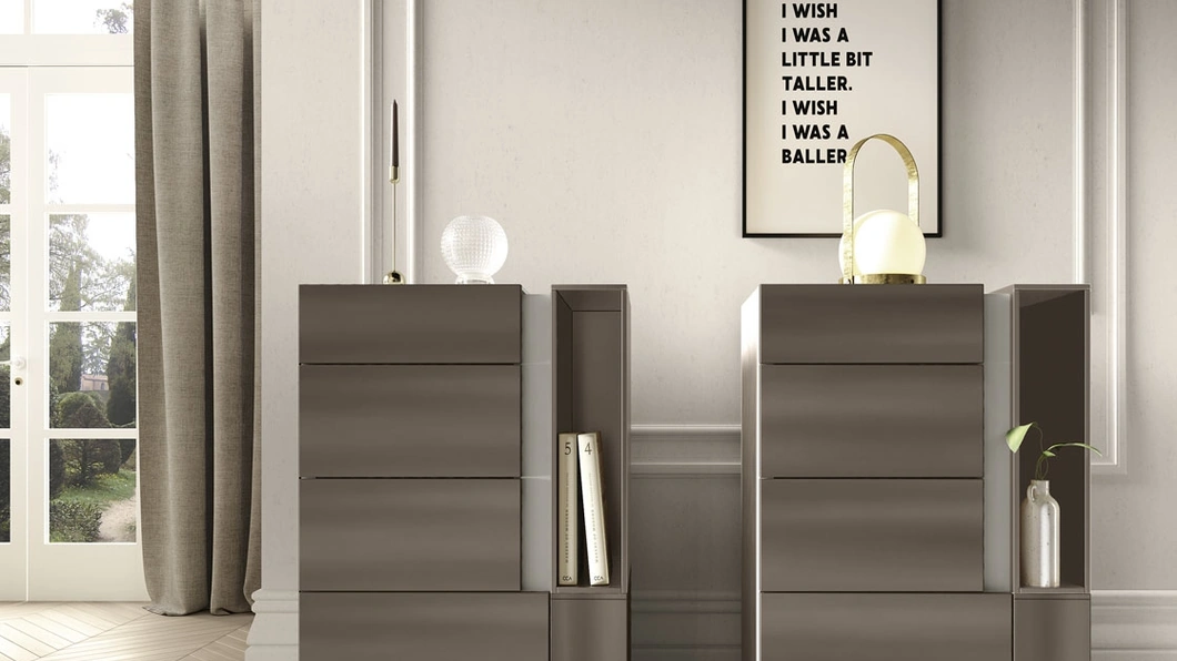 Vuoi allestire la camera da letto con Comodini e cassettiere di Adriatica? Eccoti il modello Cassettiera Ermes in laccato opaco per spazi design.