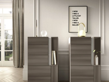 Vuoi arredare la zona notte con Comodini e cassettiere di Spar? Ecco qui il modello Deluxe Grey in laccato opaco per spazi design.