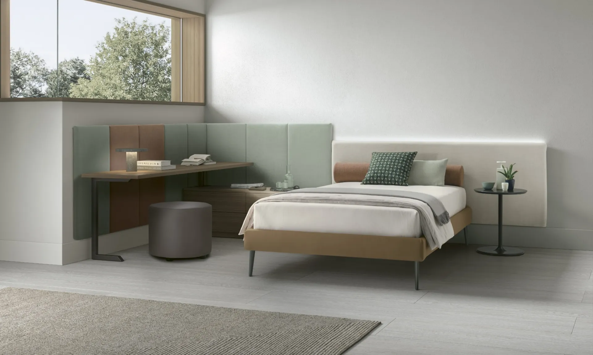 Se desideri letti singoli imbottiti, ecco qui il modello Boiserie in tessuto per completare la camera dei più piccoli.