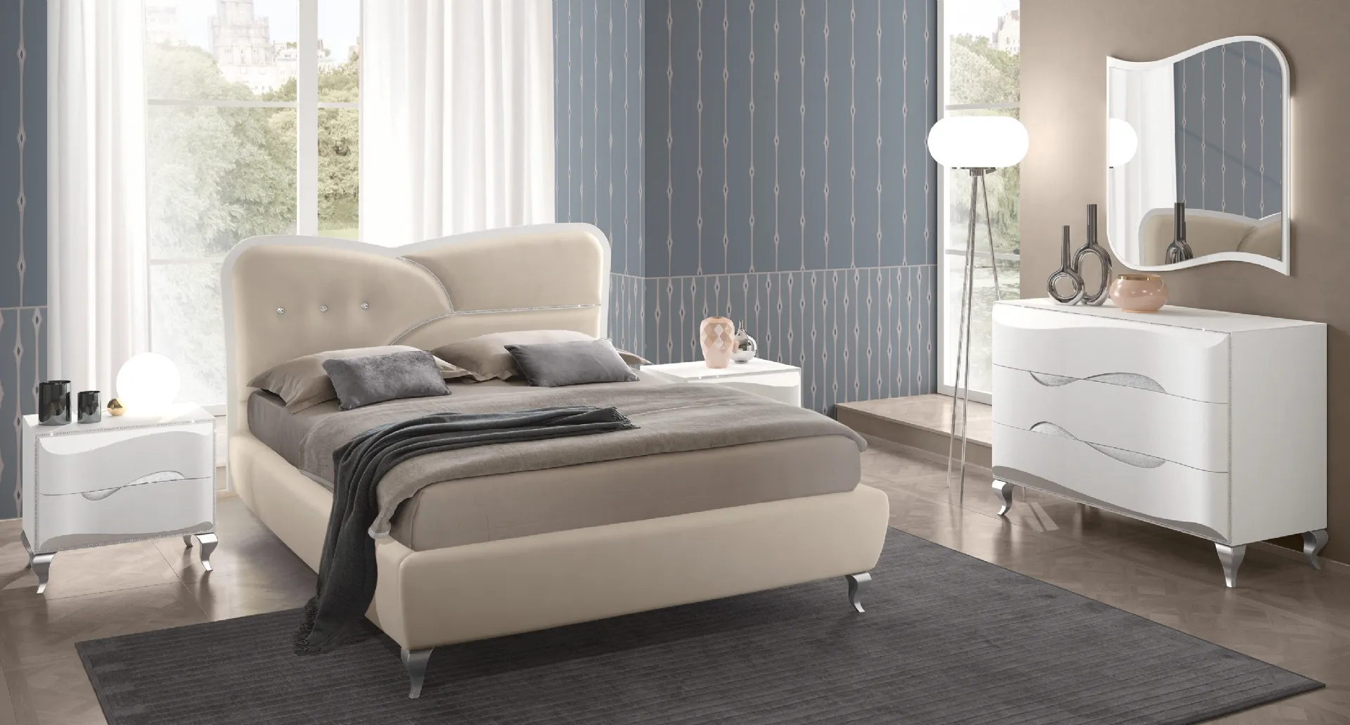 Il letto Dolly in ecopelle, tra i modelli imbottiti matrimoniali moderni di Adriatica, è perfetto per garantirti il sonno più profondo.