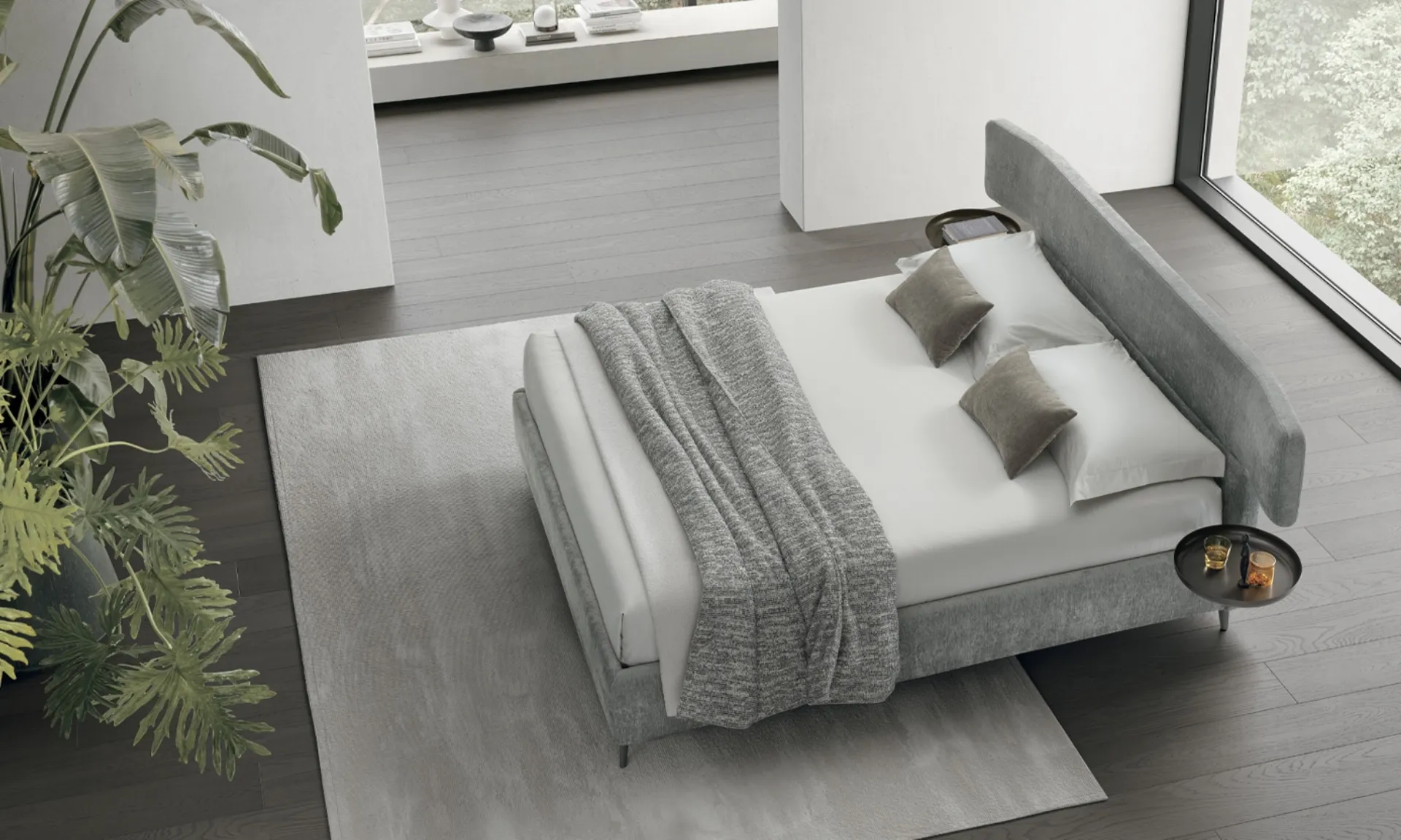 Il letto Bergè in tessuto, tra i modelli imbottiti matrimoniali design di V&Nice, è pensato per garantirti il riposo migliore.