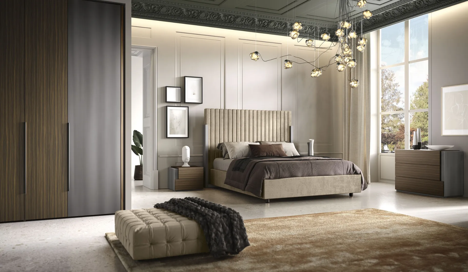 Vuoi progettare la camera da letto? Ecco qui il letto in tessuto Ipno di Adriatica per spazi design.