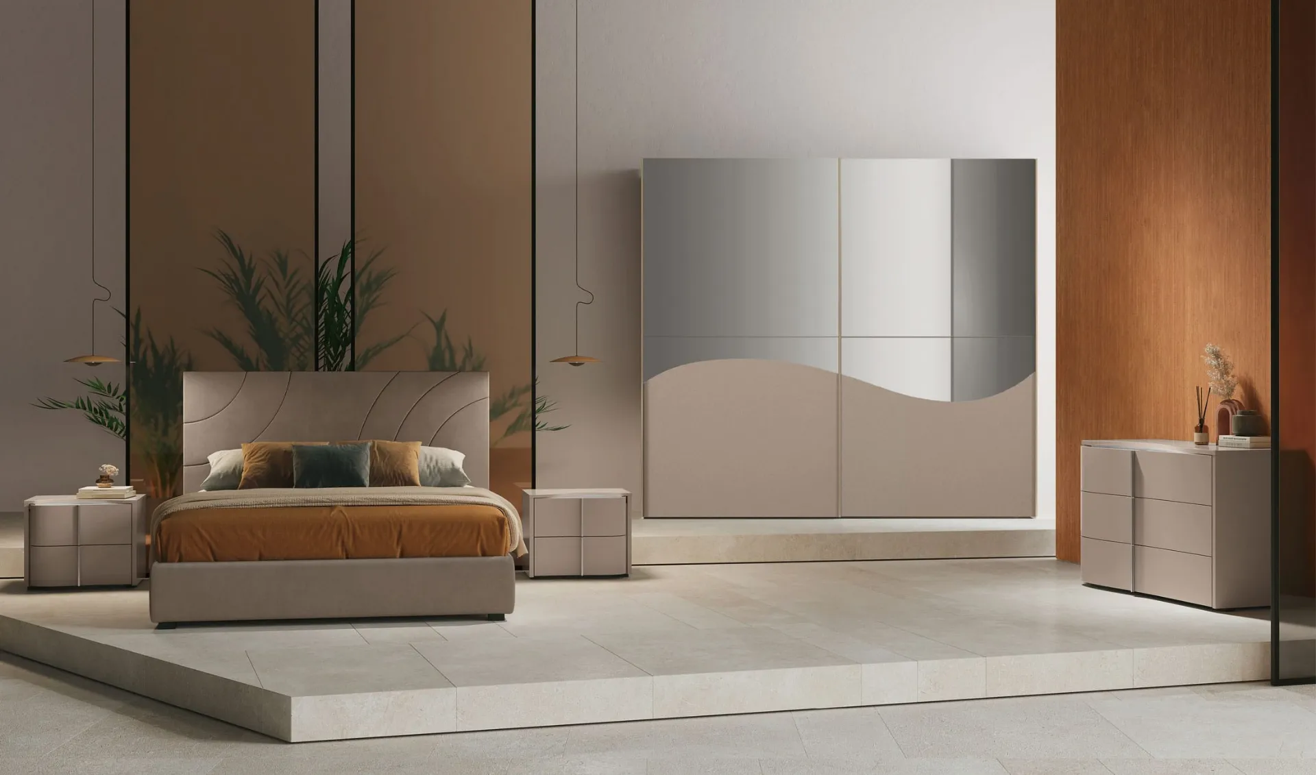 Vuoi rinnovare la camera da letto? Eccoti il letto in tessuto Ipsilon Curve di Adriatica per spazi moderni.