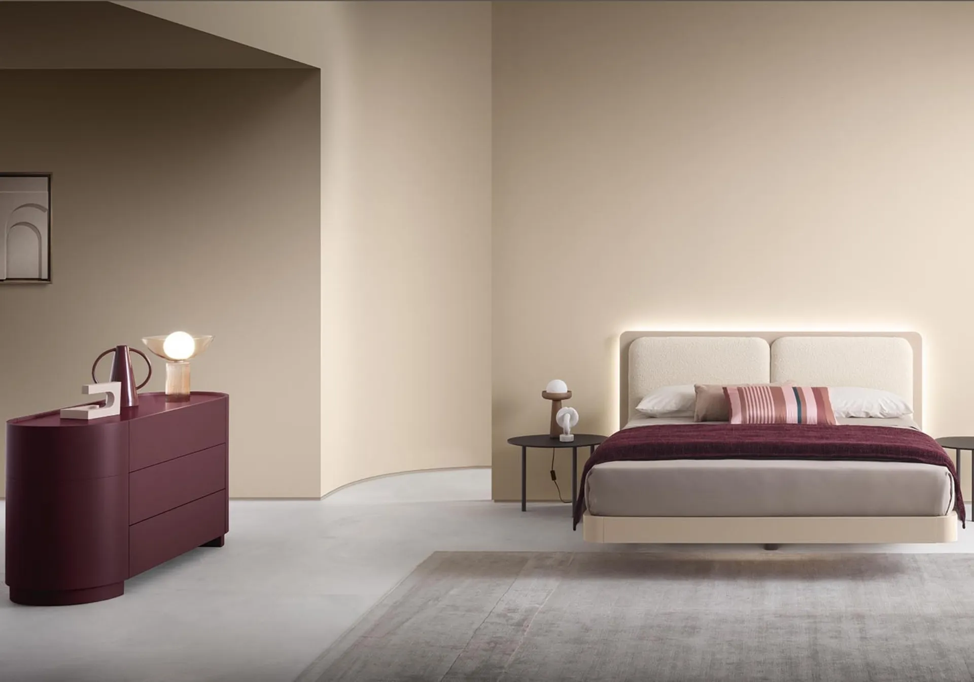 Se desideri letti matrimoniali con testiera, eccoti il modello Voile in laccato opaco per arricchire la camera da letto.