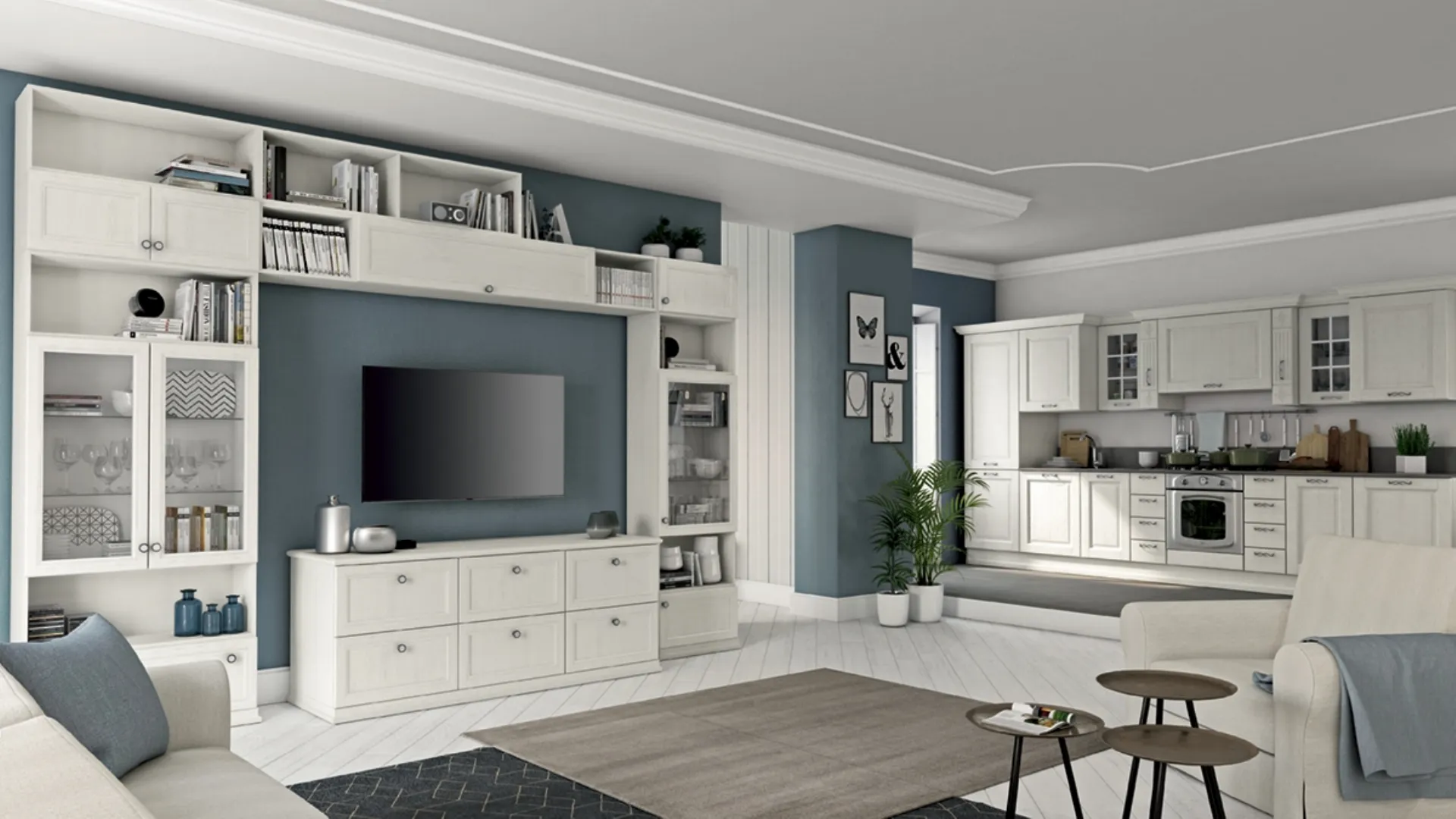 Vuoi riammodernare il living? Ottieni informazioni sulle librerie classiche a muro e arreda i tuoi spazi con il modello Arcadia AS026.