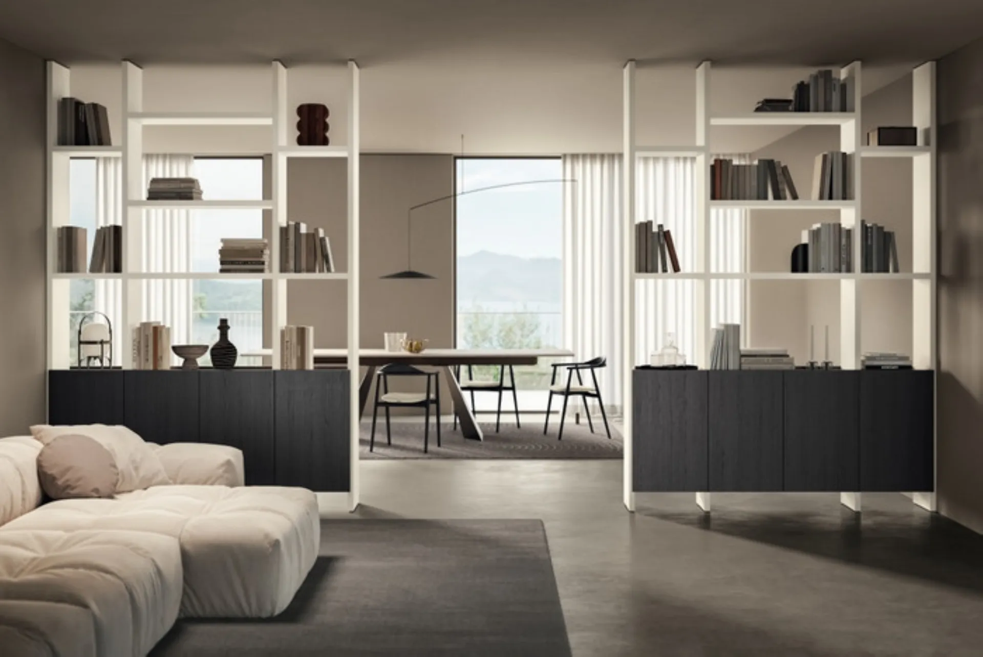 Librerie divisorie iper pratiche per stanze moderne: scopri di più sul modello Living Essenza Fluida della firma Scavolini!