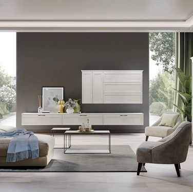 Mostrare oppure contenere libri e oggetti di ogni tipo non è l’unico compito delle Pareti Attrezzate, di fatto esse contribuiscono a rendere bello il locale secondo una precisa idea di stile, che si adatti alle tue aspettative. Nel momento in cui selezioniamo le misure, i materiali e la tonalità per le nostre Pareti Attrezzate, è sempre meglio stabilire a quale idea di stile rifarsi e considerare a quali funzioni risponderà il soggiorno. I soggiorni sono il centro vitale di ciascuna abitazione, perciò la scelta dell'arredo da posizionare al loro interno è importante per assicurarsi una totale vivibilità, tanto comfort e grandi doti di accoglienza. Dato che il living è, per eccellenza, il locale dedicato ad attività come relax, ospitalità e lavoro, deve risultare uno spazio bello da vedere, confortevole e attrezzato con praticità. Il soggiorno è fulcro delle relazioni, spazio di ospitalità e al contempo di relax quotidiano, dove spesso accoglierai amici e parenti per piacevoli serate in compagnia, per feste e pranzi. Decidi con noi come arredare il living dei tuoi sogni: con le nostre Pareti Attrezzate di charme, a terra o sospese se lo spazio non è amplio, ottimizzerai gli spazi disponibili valorizzandoli appieno.