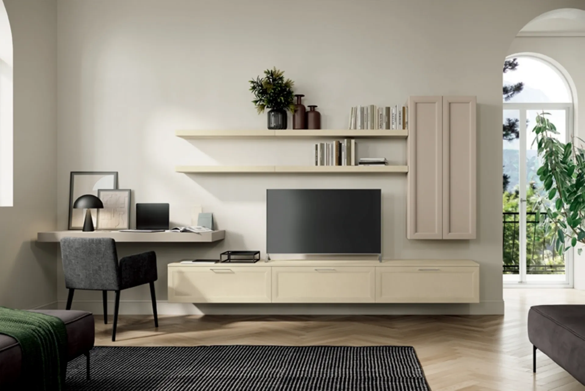 Clicca e scopri di più sulla parete attrezzata Arcadia AS004 del brand Colombini Casa: è la soluzione dalle linee classiche perfetta per te.