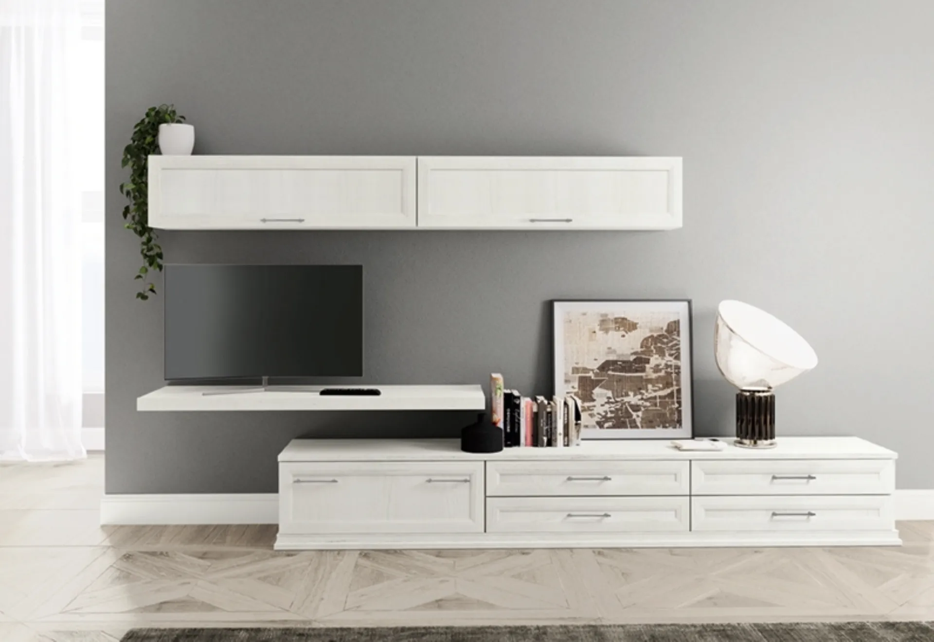 Pareti attrezzate e pensili Colombini Casa: clicca e scopri il modello Arcadia AS020 e potrai impreziosire stanze classiche di ogni genere.