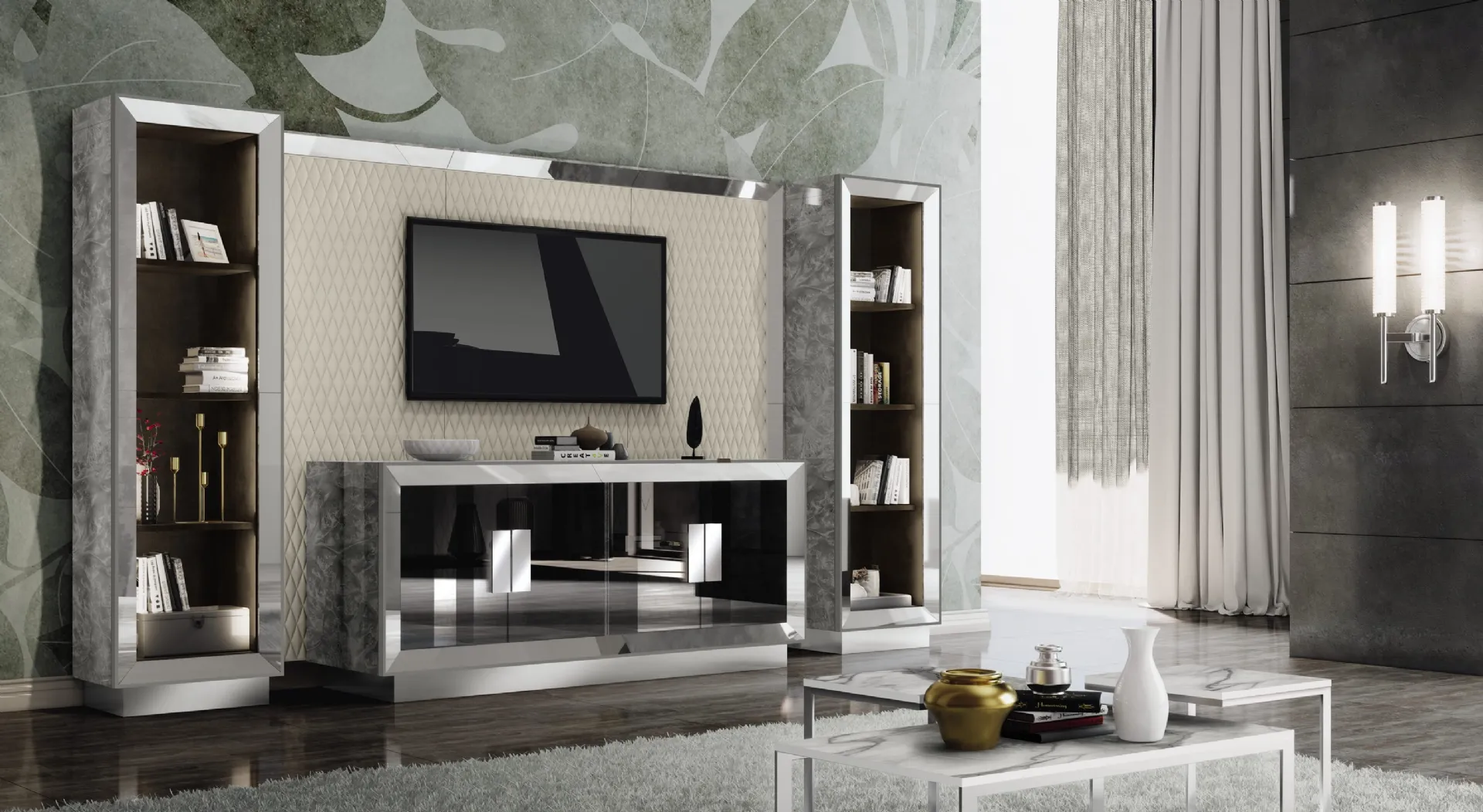 Pareti attrezzate e mobili giorno Adriatica: clicca e scopri il modello Astra Glass e potrai valorizzare stanze moderne di ogni genere.