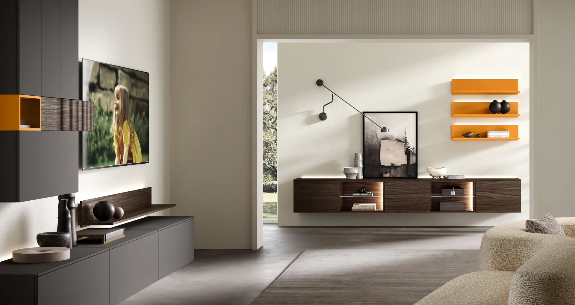 Se desideri completare un soggiorno pratico e operativo dalle linee moderne, ti presentiamo la parete attrezzata Evolution H2O 07 Adriatica.