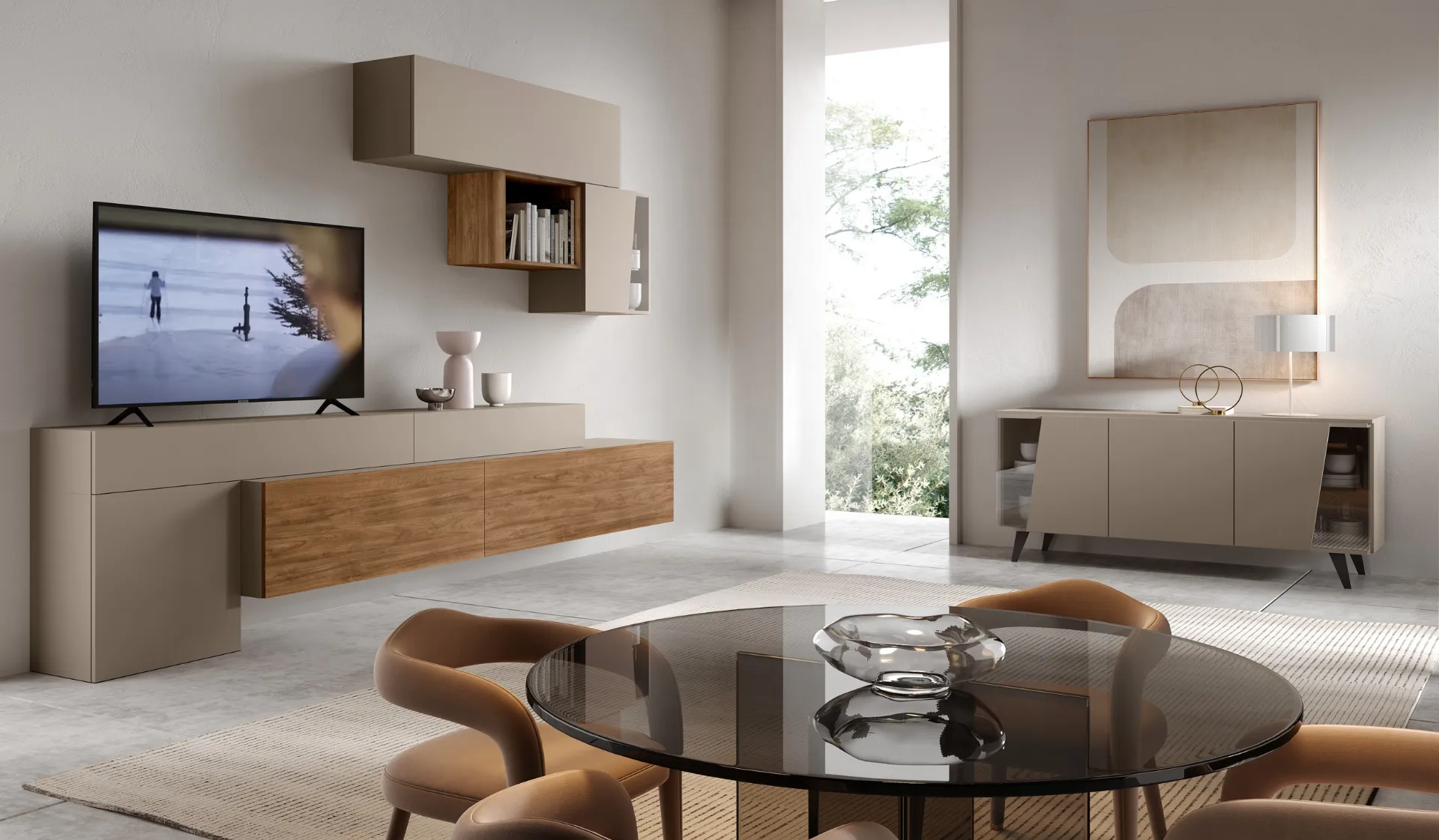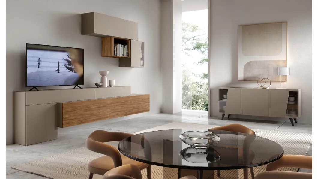 Vuoi arredare un living pratico e operativo? Ti presentiamo la parete attrezzata Evolution H2O 17 Adriatica dalle linee decise moderne.