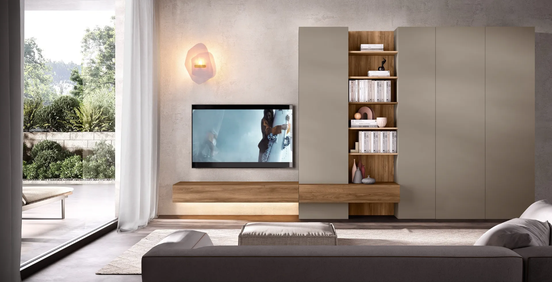 Vuoi allestire un living operativo e pratico? Ti offriamo la parete attrezzata Evolution H2O 20 Adriatica dalle linee decise moderne.