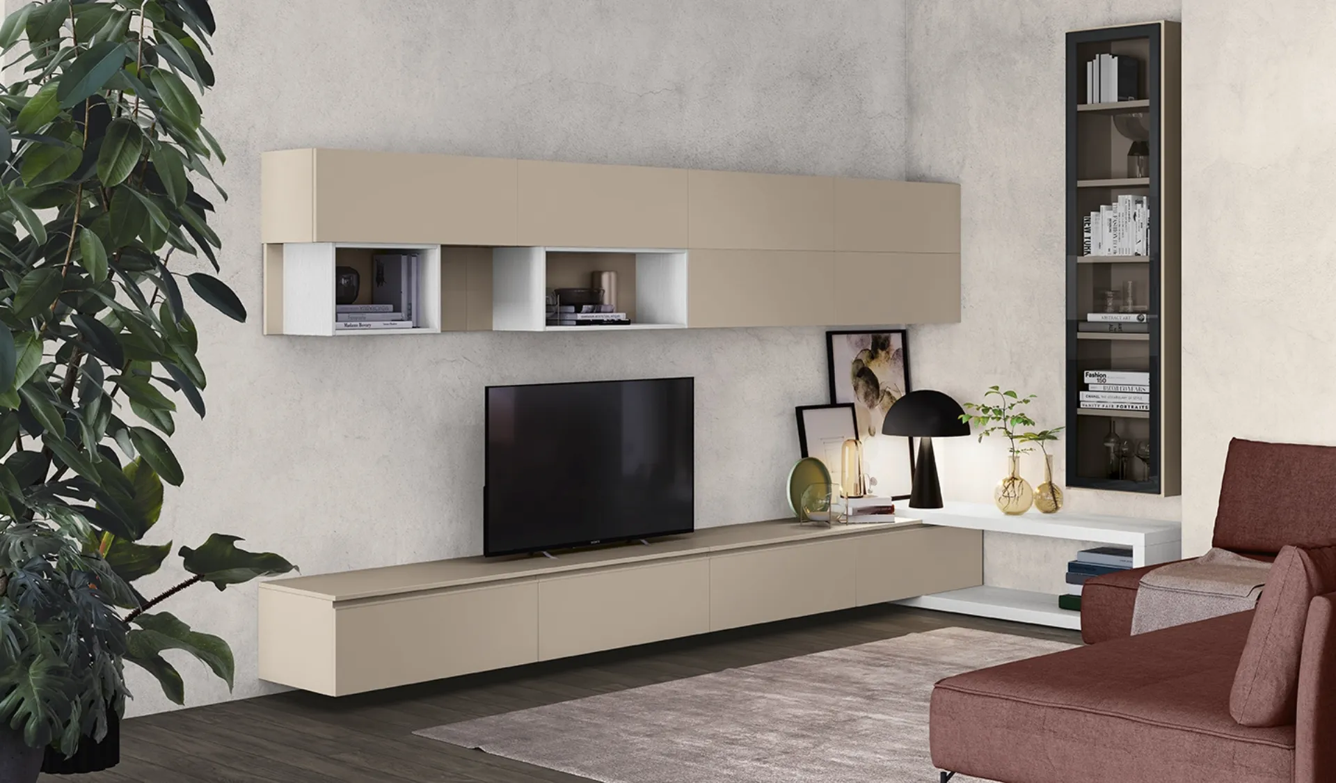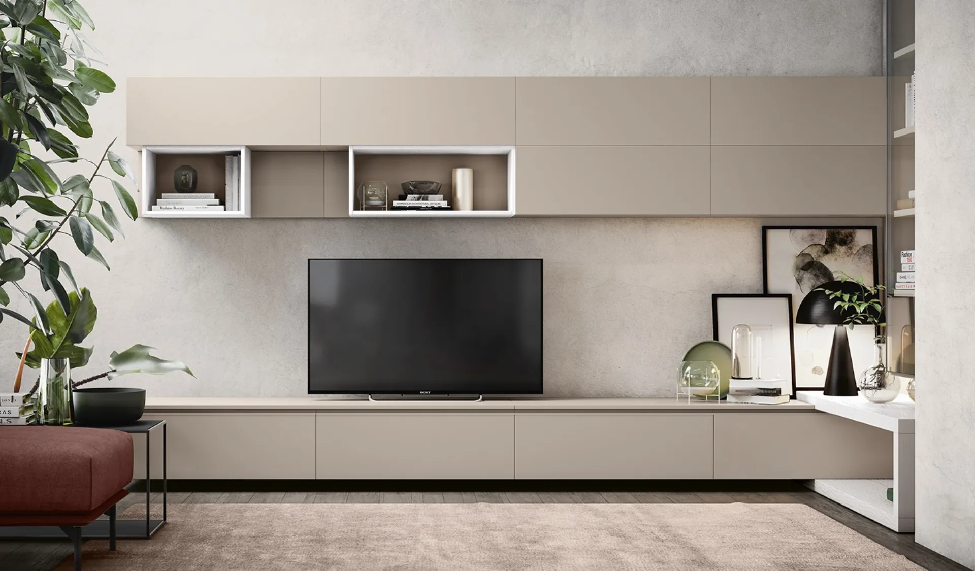 Questa parete attrezzata è una delle soluzioni del brand e ti permetterà di ammobiliare il living secondo le più particolari problematiche abitative. Attraverso un gioco dinamico di accostamenti fra componenti a giorno o vani chiusi, le Pareti Attrezzate moderne arredano il soggiorno sfruttando bene ogni spazio. Le Pareti Attrezzate hanno acquisito un posto fondamentale nella zona giorno delle nostre case: sono arredi plurifunzionali e salvaspazio sempre realizzabili su misura.