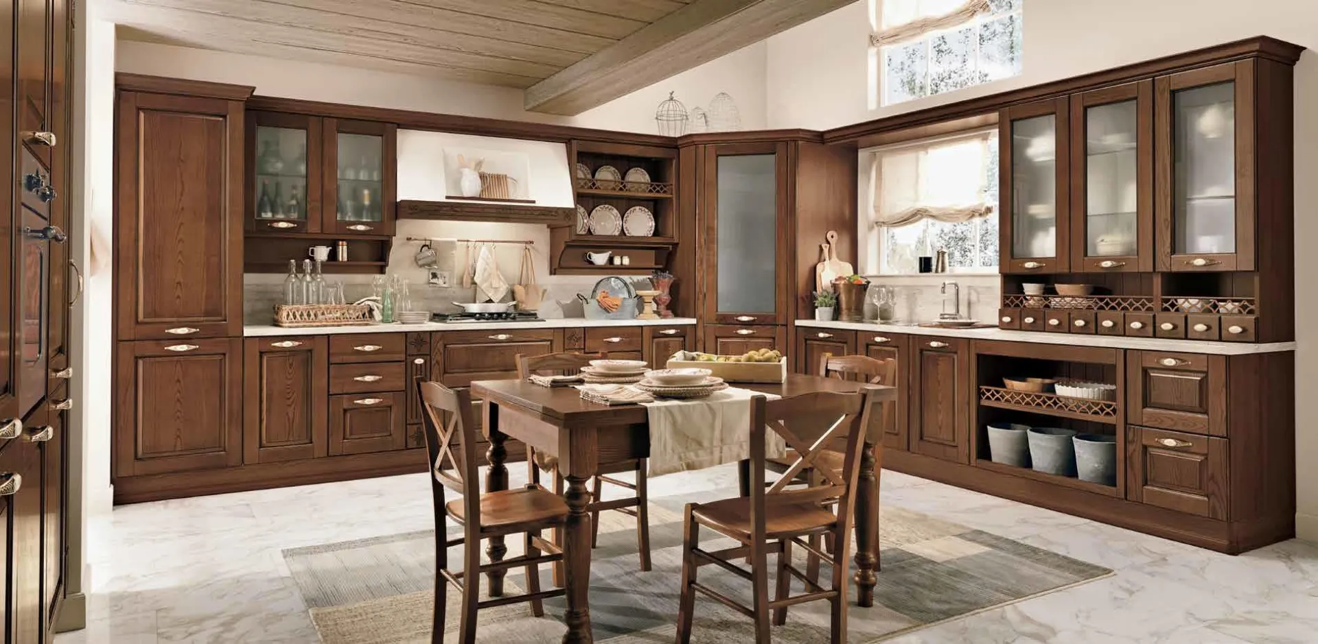 Scopri nel nostro punto vendita una ricca gamma di soluzioni del marchio: la collezione completa Colombini Kitchen ti attende! Solo con le più belle soluzioni ad angolo potrai ammobiliare l'ambiente seguendo le tue personali esigenze abitative ma in perfetto stile tradizionale. La Cucina Classica angolare Armonia 01 di Colombini Kitchen nell'immagine propone un mood assai funzionale, elegante e sofisticato, portavoce del tipico sapore romantico delle Cucine Classiche.