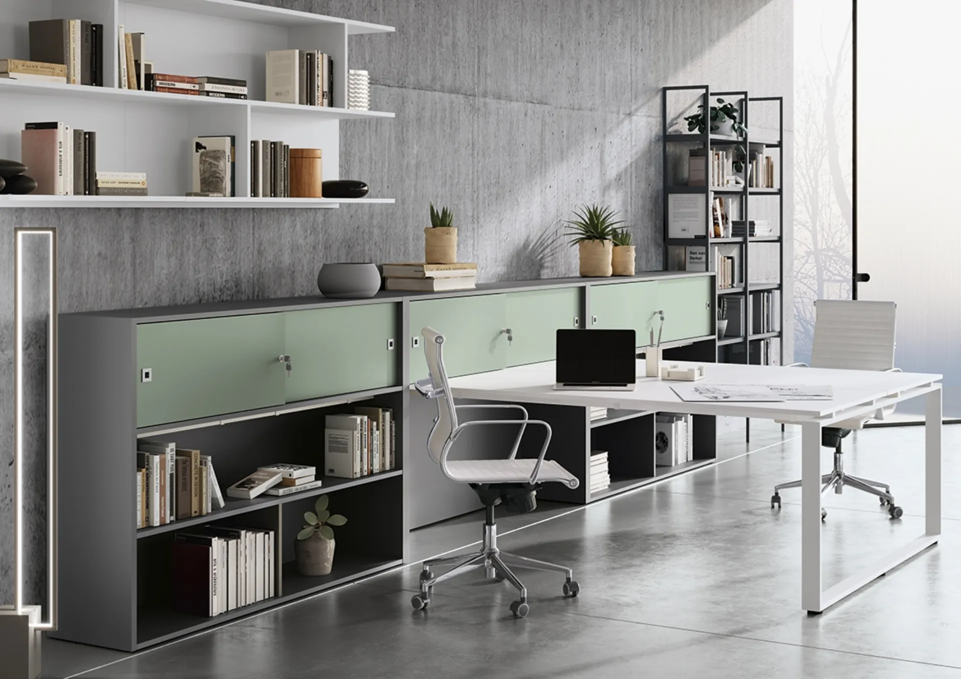 Progetta il tuo spazio lavorativo con soluzioni di scrivanie operative in melaminico della marca: la vasta offerta di arredamenti per il tuo ufficio ti attende in negozio. In showroom potrai toccare con mano tutte le più originali composizioni arredative di Arredo Ufficio in melaminico disponibili in commercio, sempre di grande qualità. Colombini Office realizza arredi di grande qualità, sempre capaci di agevolare diverse richieste per quanto concerne sia l'estetica che la praticità. La proposta in foto, tra i vari modelli di scrivanie operative firmati Colombini Office, darà personalità e stile agli spazi, attrezzandoli mixando logica e coerenza.