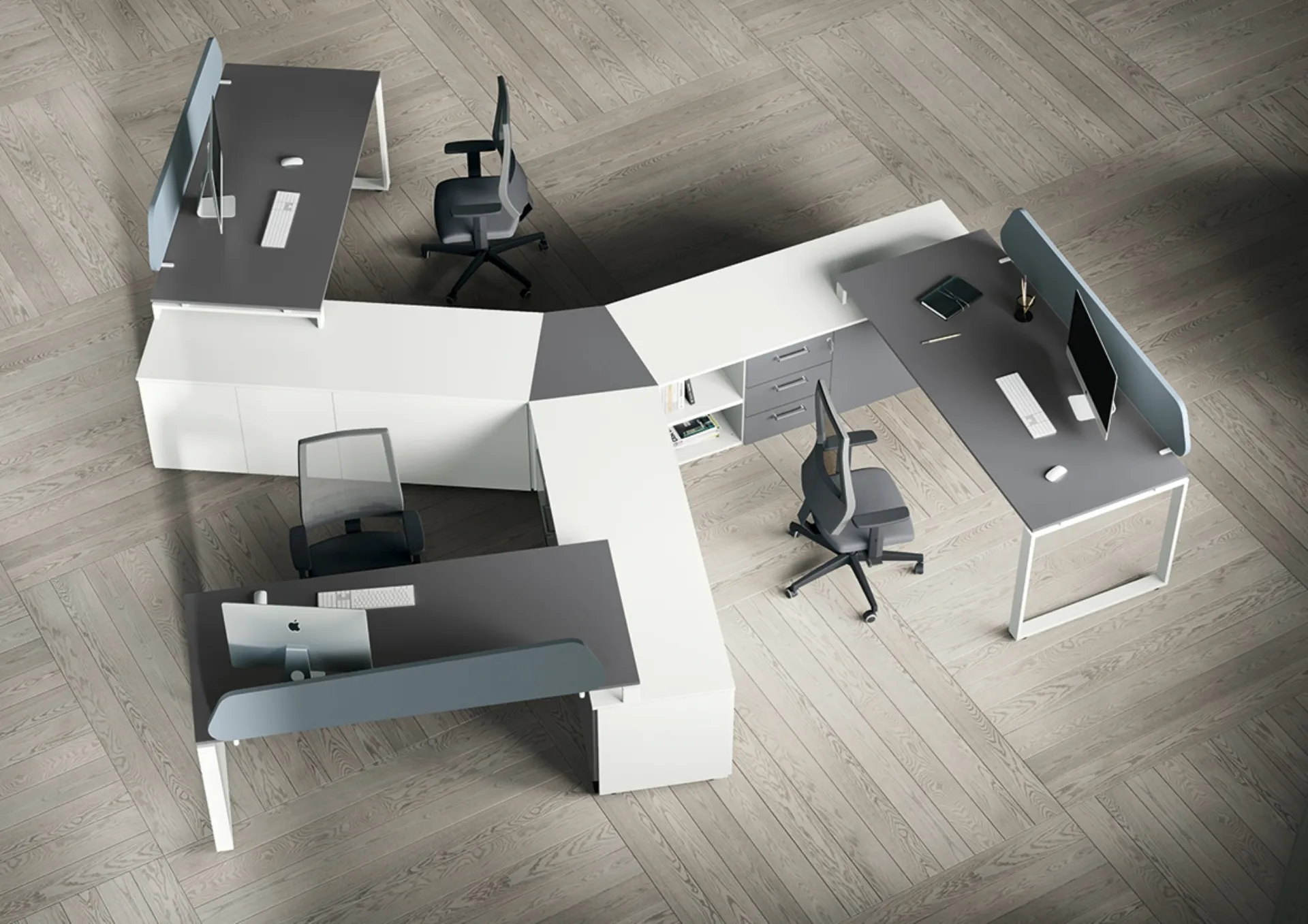 Vuoi arredare l'ambiente lavorativo? Ecco qui varie proposte di scrivanie operative in melaminico, come il modello Loft Operativa Anello Chiuso di Colombini Office.
