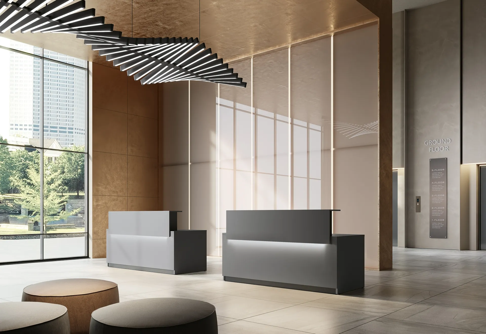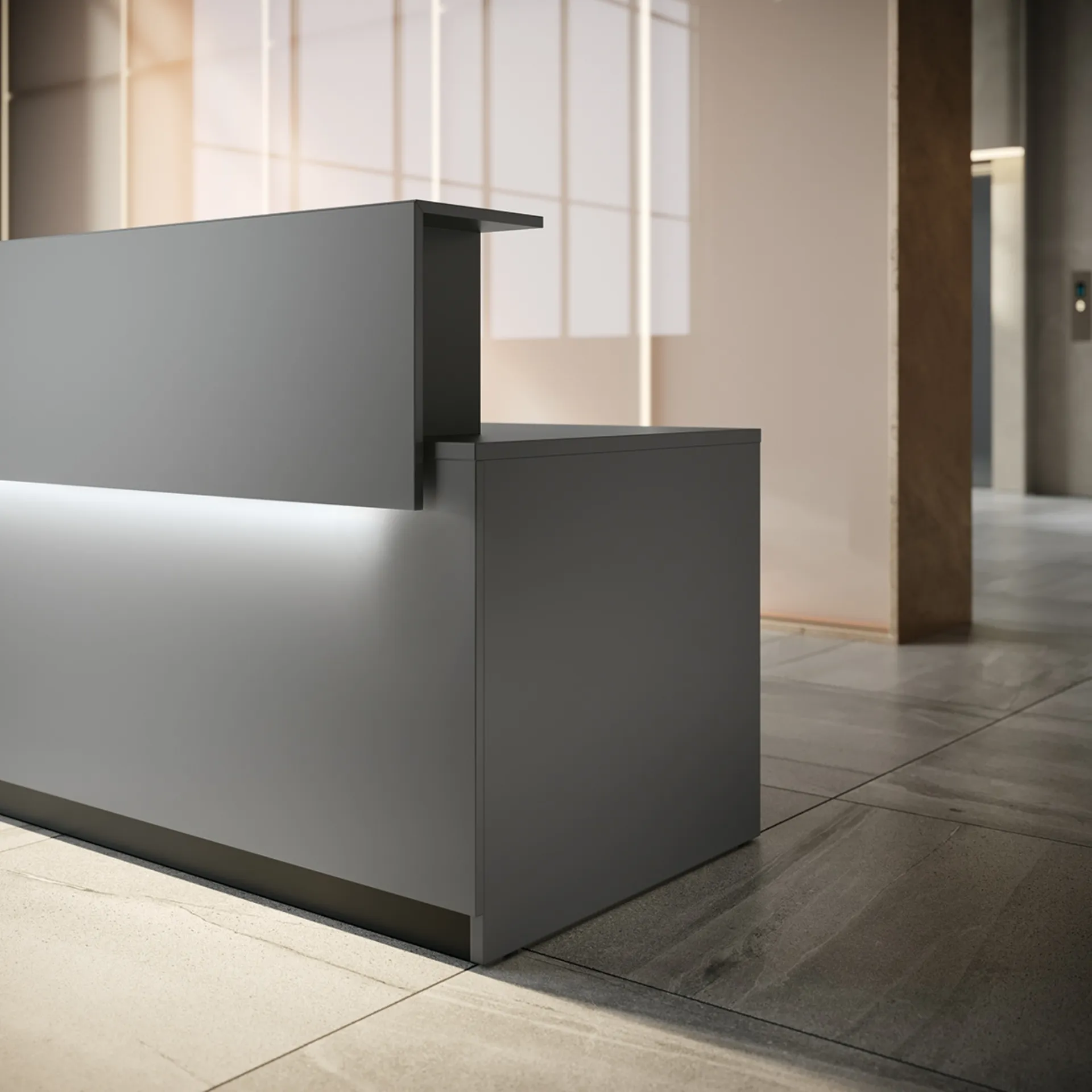 Vuoi progettare l'ambiente lavorativo? Eccoti varie proposte di banconi reception in melaminico, come il modello Reception Class 03 di Colombini Office.